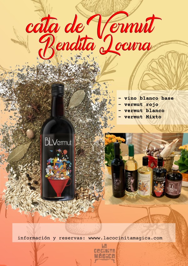 El objetivo de este taller es ofrecer información de un producto tan apreciado como es el vermut, en este caso con la gama de vermuts artesanos de Bendita Locura, teniendo esta ocasión la especial ventaja de poder ofrecer en el vino base con el que han sido elaborados, para que la experiencia sea todavía más didáctica.